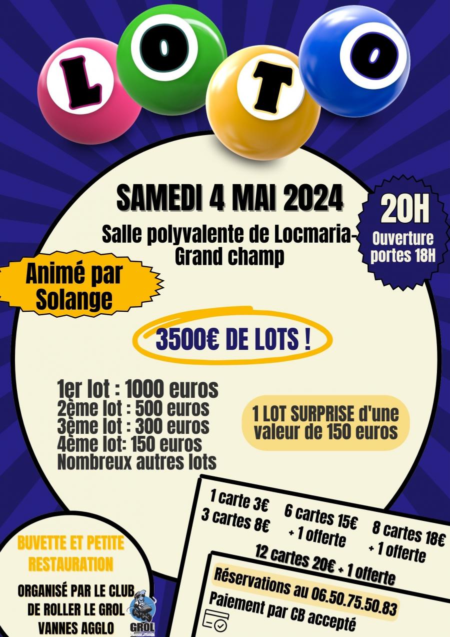 Le GROL organise un Loto ce samedi 4 mai à Locmaria-Grand Champ, à la clé ? De nombreux lots à gagner!